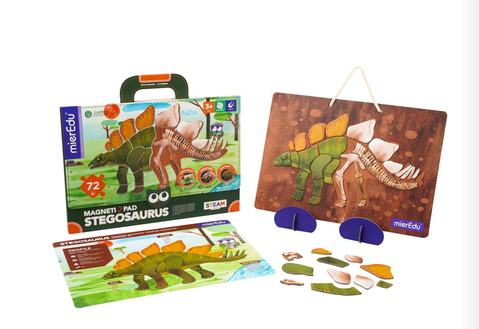 Designed for beginners to learn the basics of stegosaurus, including the body and bones of the stegosaurus magnetic puzzle, stegosaurus anatomy card. Our mPad (magnetic pad) can replace the iPad and keep kids away from the screen. It can also be easily hung or placed on a stand, so it is ideal for kids to play everywhere.