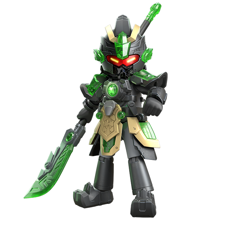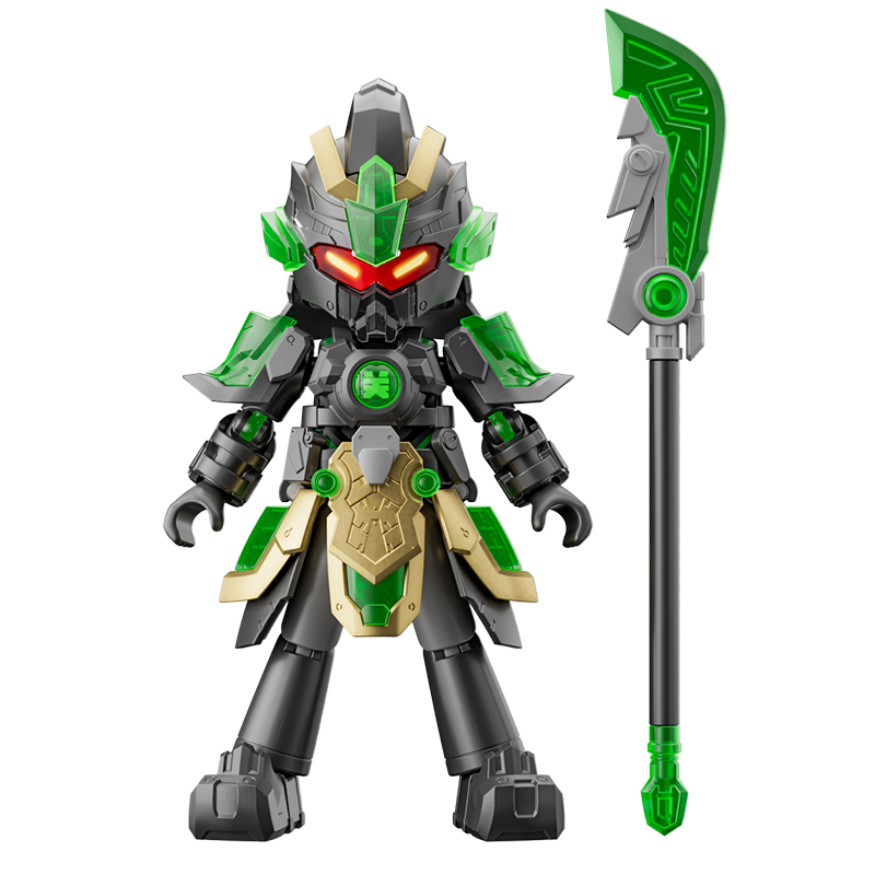 Guan Yu marches forth with his Green Dragon Crescent Blade and Beard Armor, reforged in heavy mechanized plating. Tool-free construction supports powerful sweeping attacks.