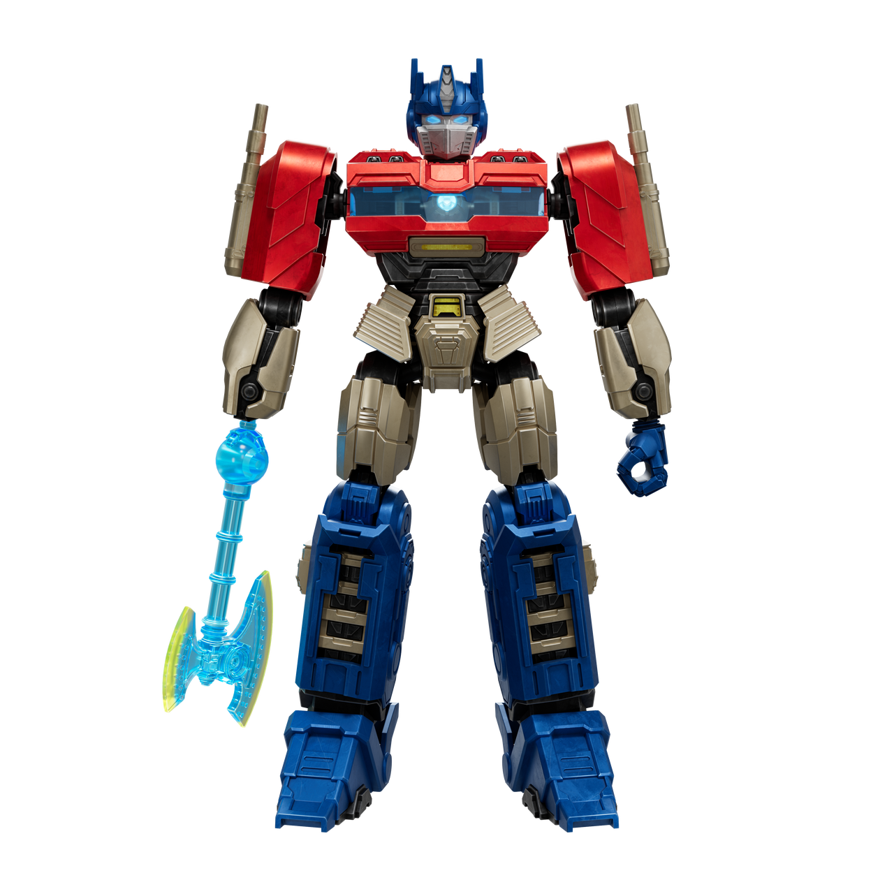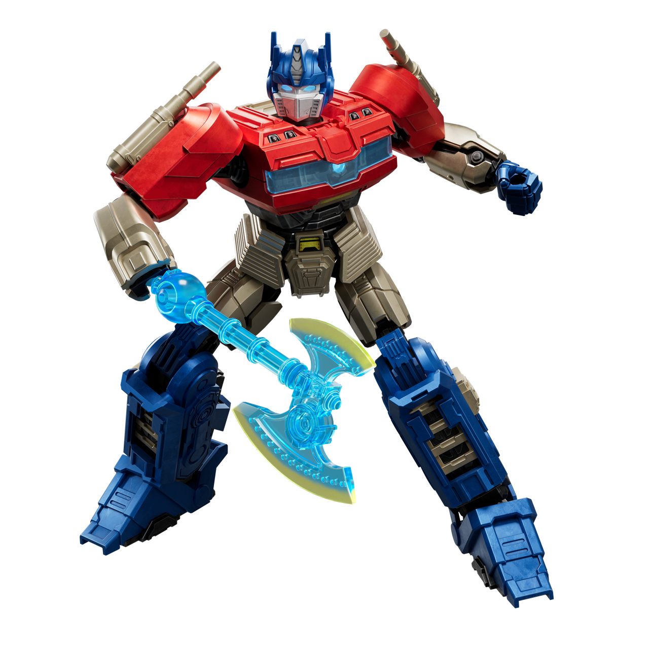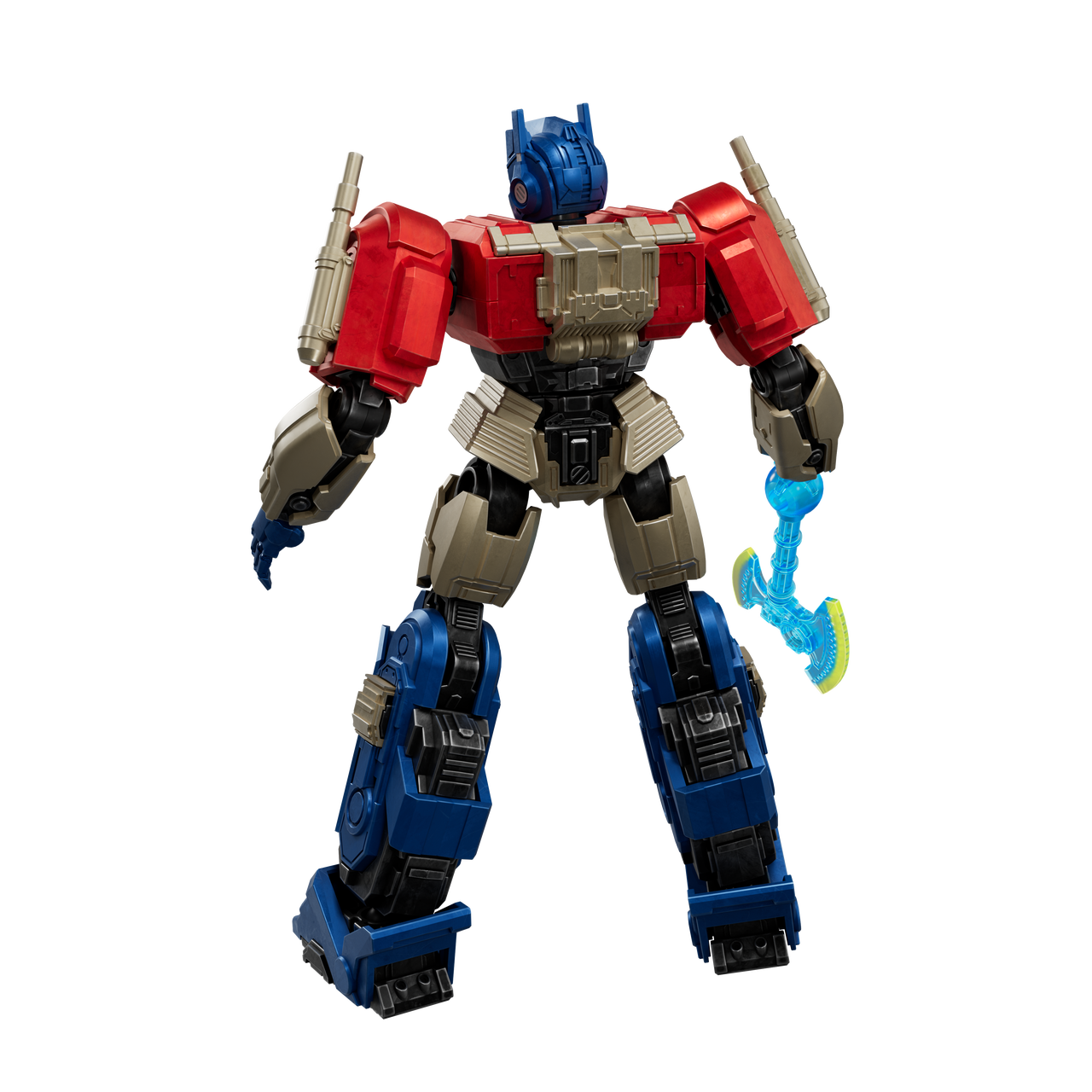 This 5-inch Optimus Prime figure boasts full articulation, light-up features, and movie-accurate details. It includes weapons, interchangeable hands, and a display stand. No special tools are needed for assembly. Suitable for ages 12+, this official Transformers: One merchandise comes with a collector's card, ideal for both play and display.
