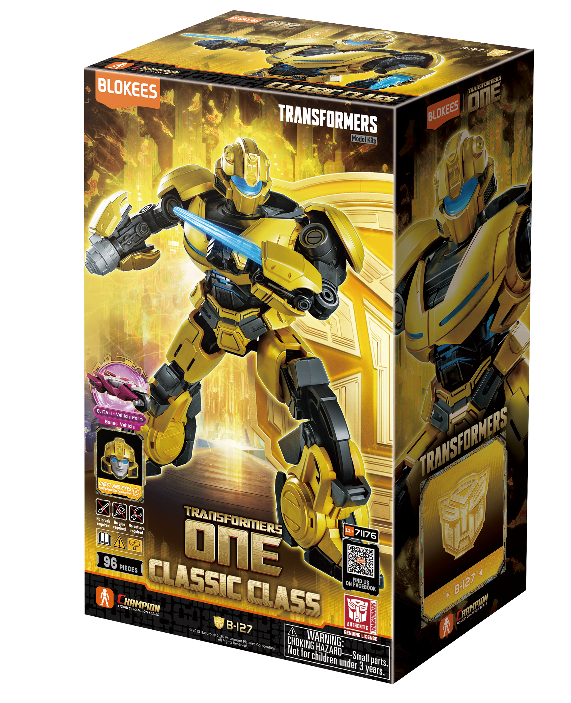 -Movie-accurate details -LED lights in eyes & chest -20+ moving joints & swappable parts -Official Transformers One licensed -Elite-1 vehicle form (Bonus Vehicle) -No glue or tools needed