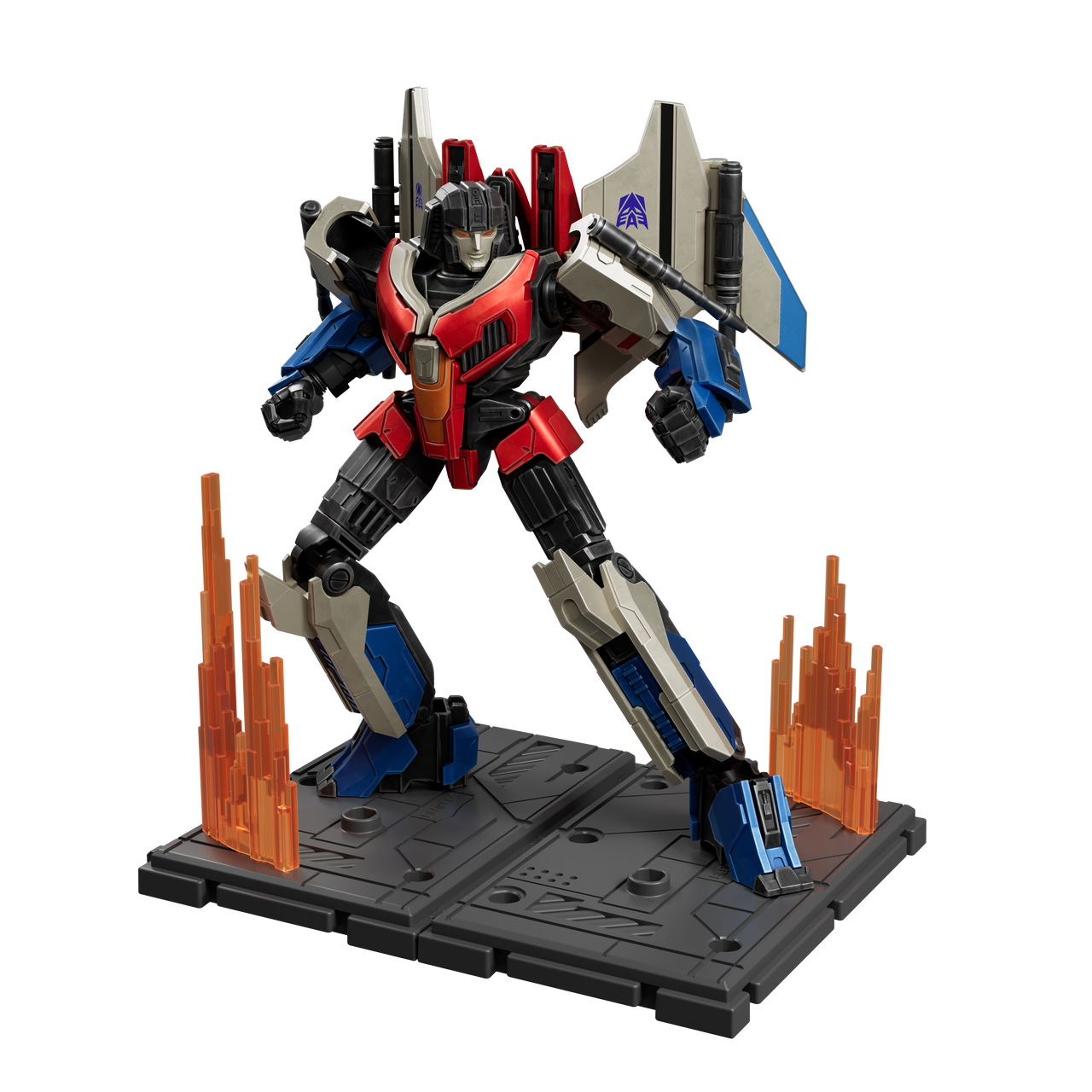 Packaging Contents Transformer Figure x 1 (87 Pieces) Weapon Accessory / Poseable Gesture x 2 Display Base x 2 Blast Effects × 1 Instruction Manual x 1 Battery Manual ×1