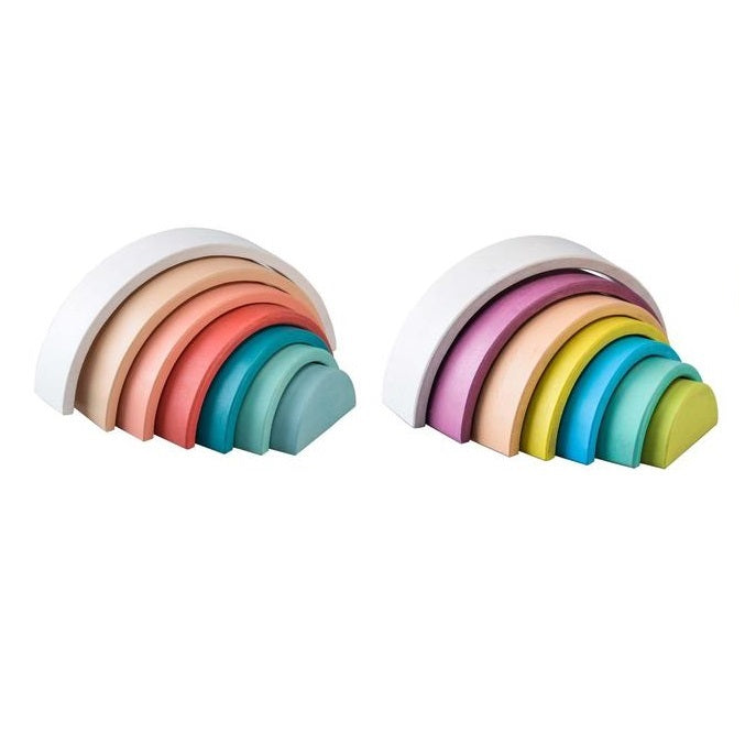Building and stacking boost both fine and gross motor skills as well as eye and hand coordination. These activities help a baby to learn and be aware of the surrounding environment. Comes in two difference sets of Pastel rainbow colours. Each set is individually boxed.
